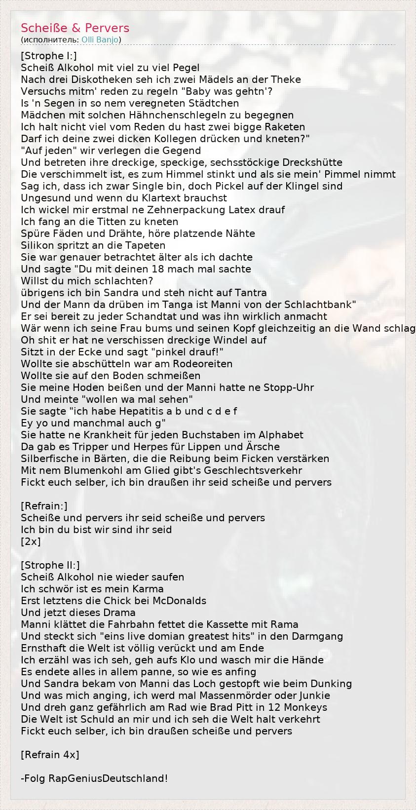 А как ты думаешь, о чем песня "Scheiße & Pervers" ?