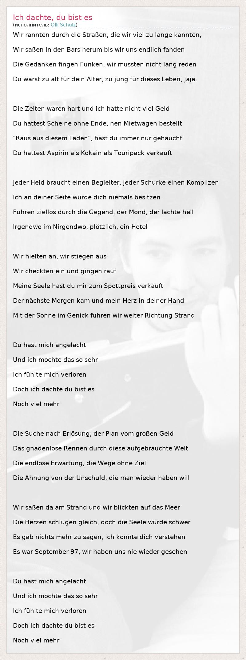 А как ты думаешь, о чем песня "Ich dachte, du bist es" ?