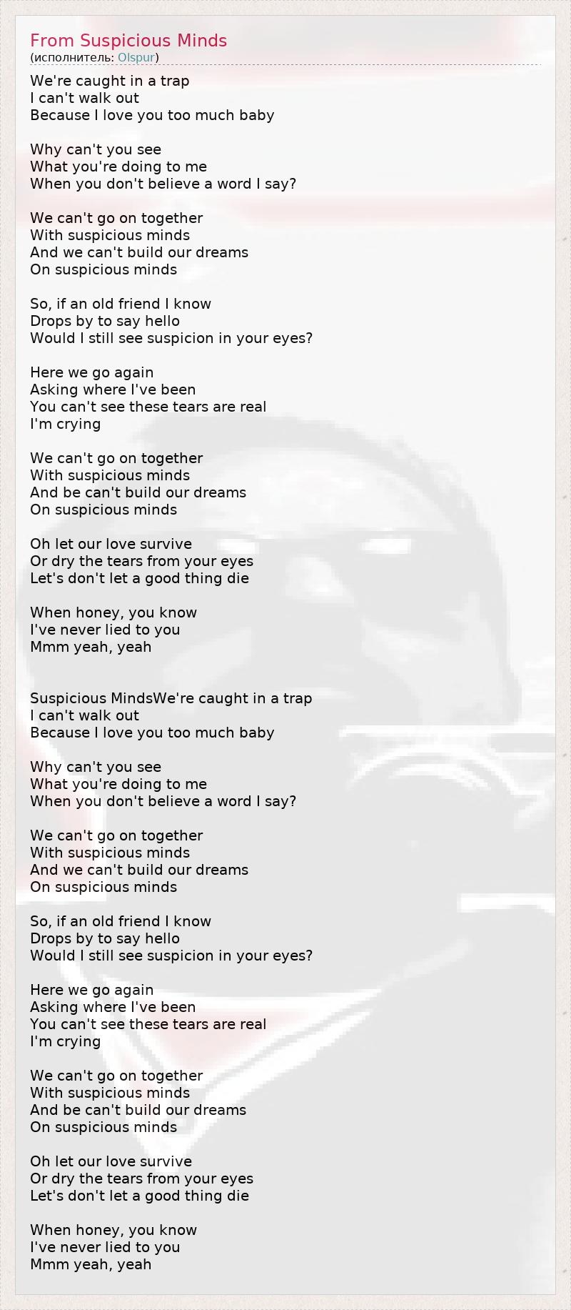 А как ты думаешь, о чем песня "From Suspicious Minds" ?