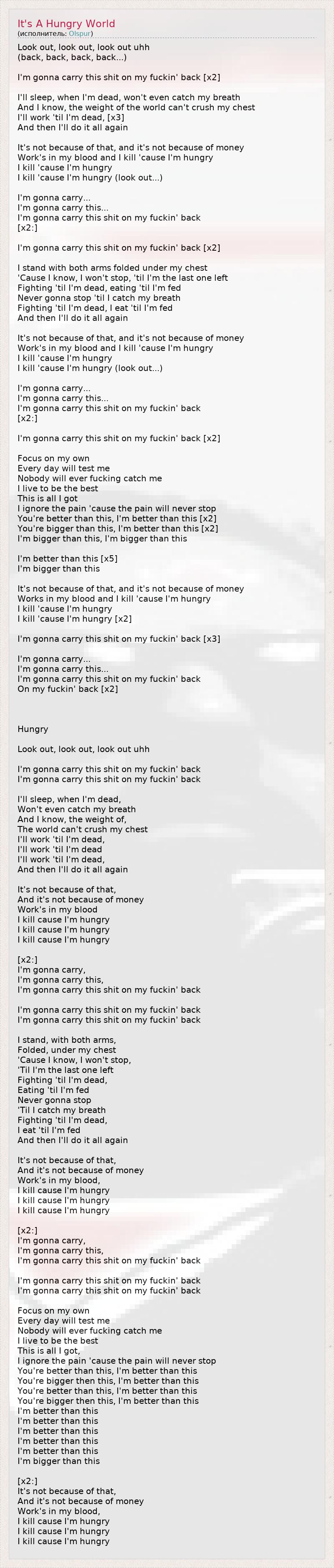 А как ты думаешь, о чем песня "It's A Hungry World" ?