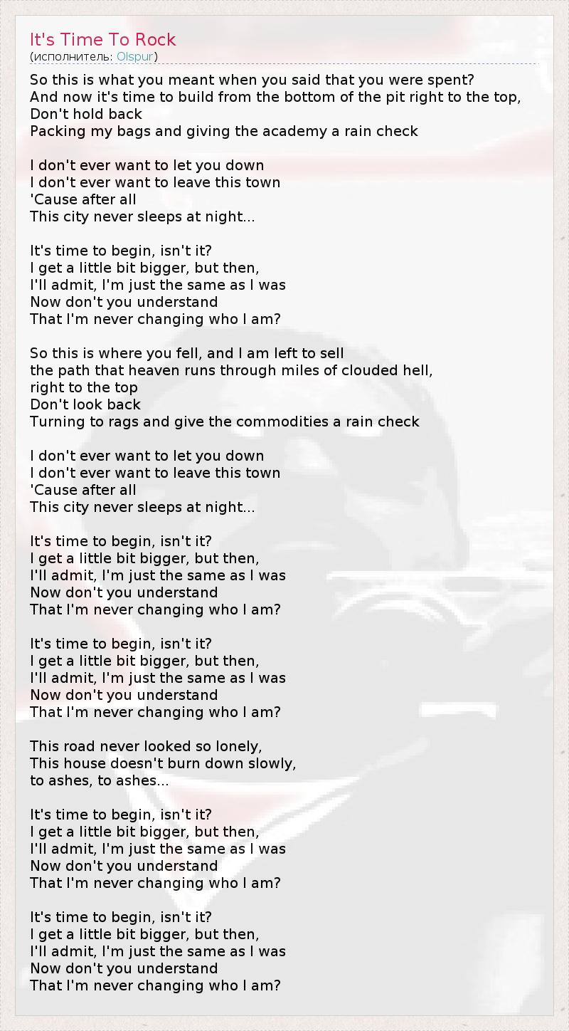 А как ты думаешь, о чем песня "It's Time To Rock" ?