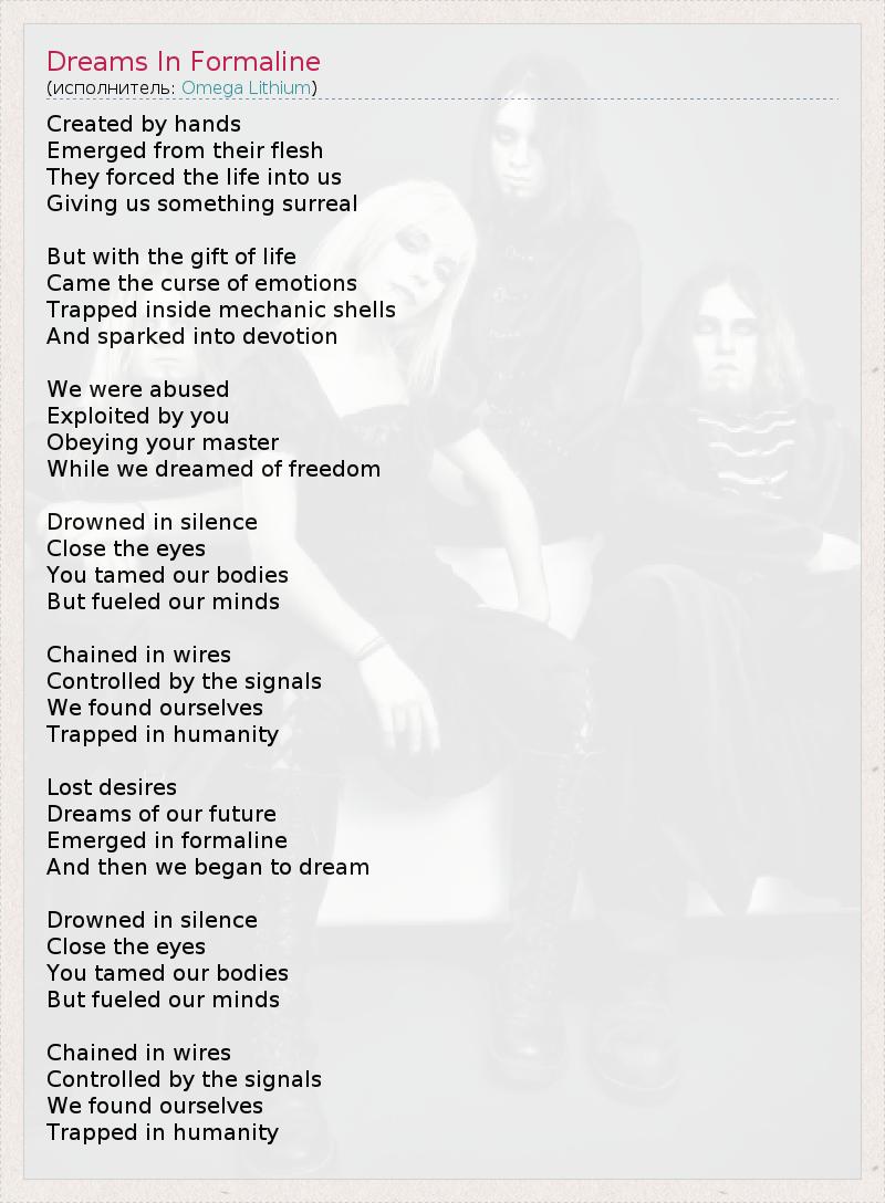 А как ты думаешь, о чем песня "Dreams In Formaline" ?