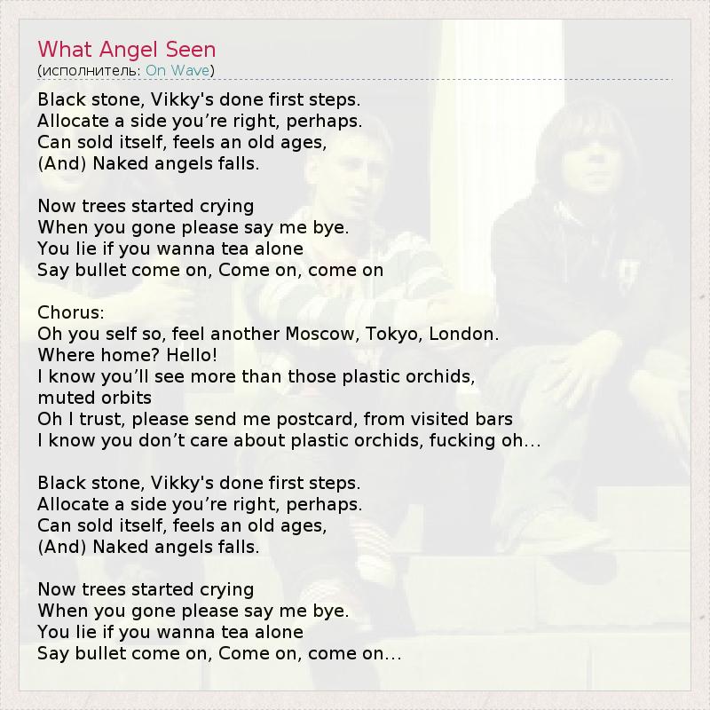 А как ты думаешь, о чем песня "What Angel Seen" ?