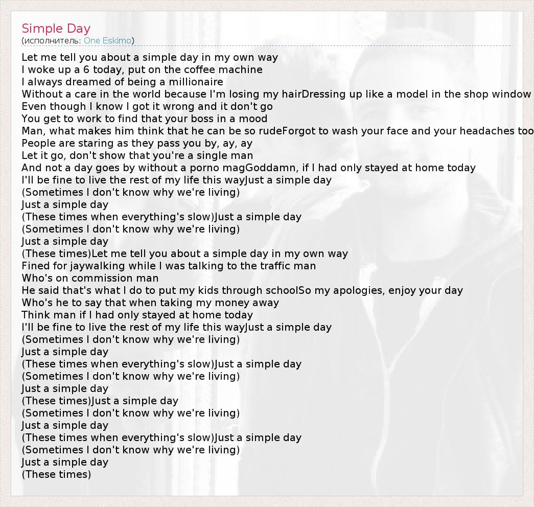 А как ты думаешь, о чем песня "Simple Day" ?