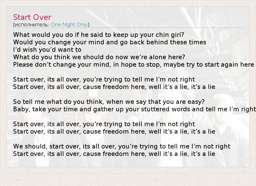 Начать заново, его во всем, вы пытаетесь сказать мне, что я не права
