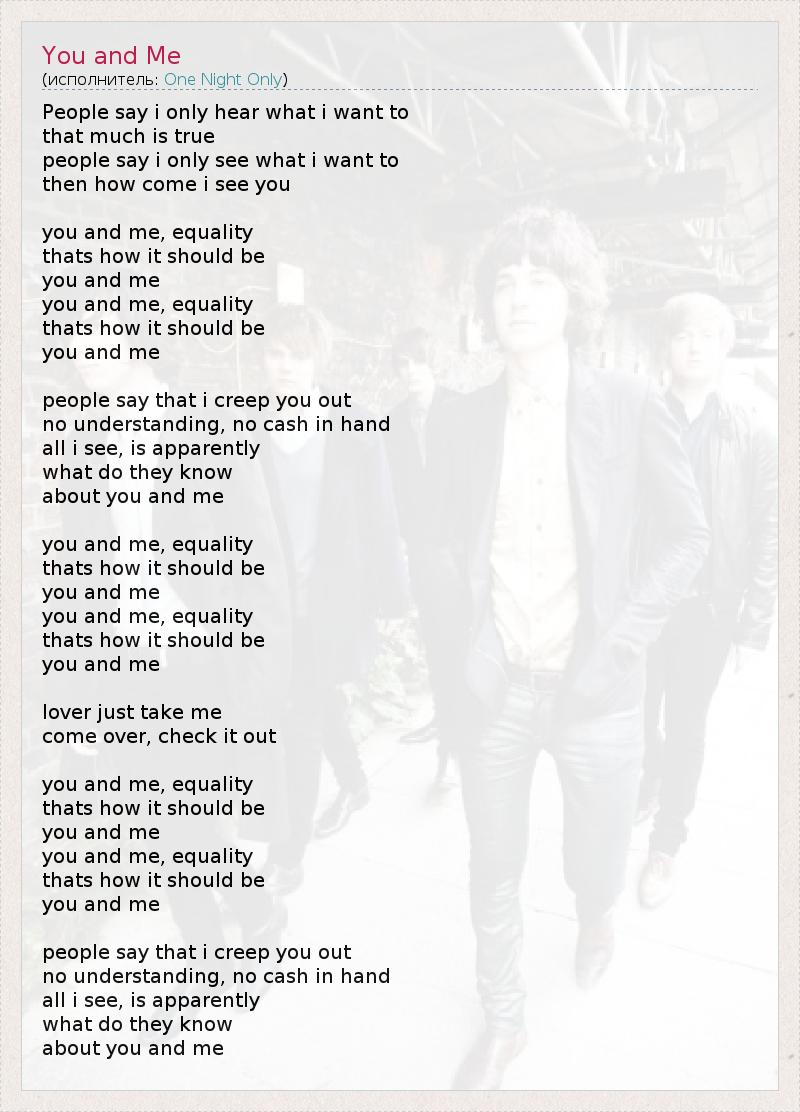 А как ты думаешь, о чем песня "You and Me" ?