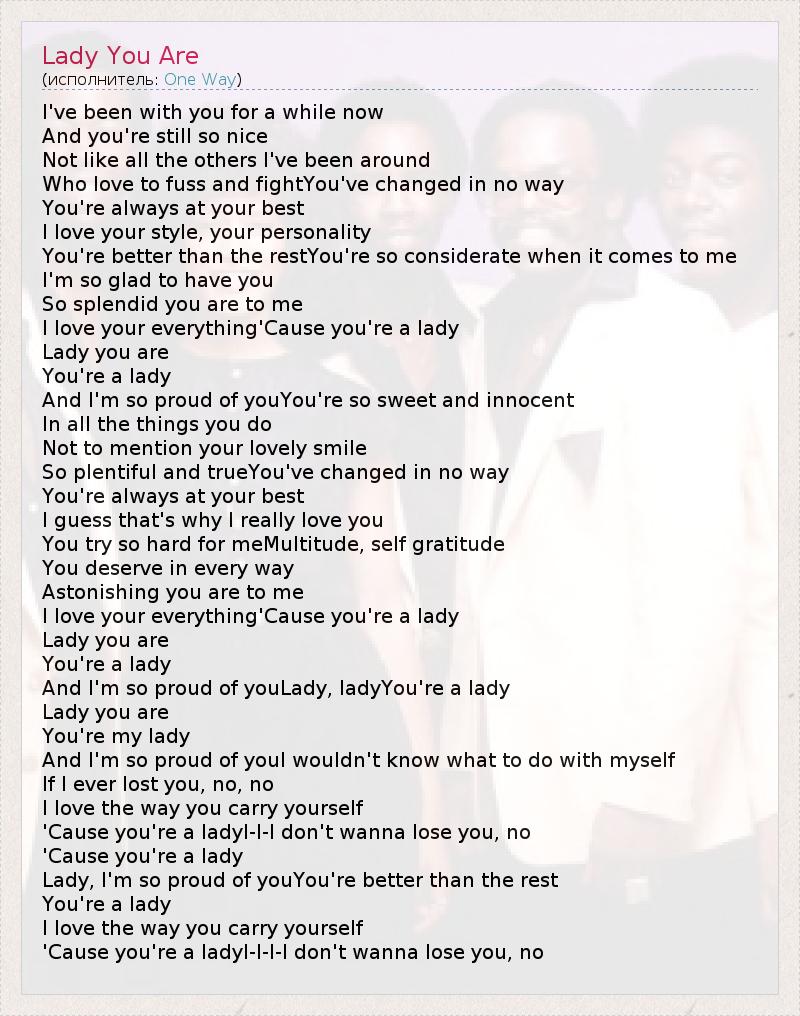 А как ты думаешь, о чем песня "Lady You Are" ?