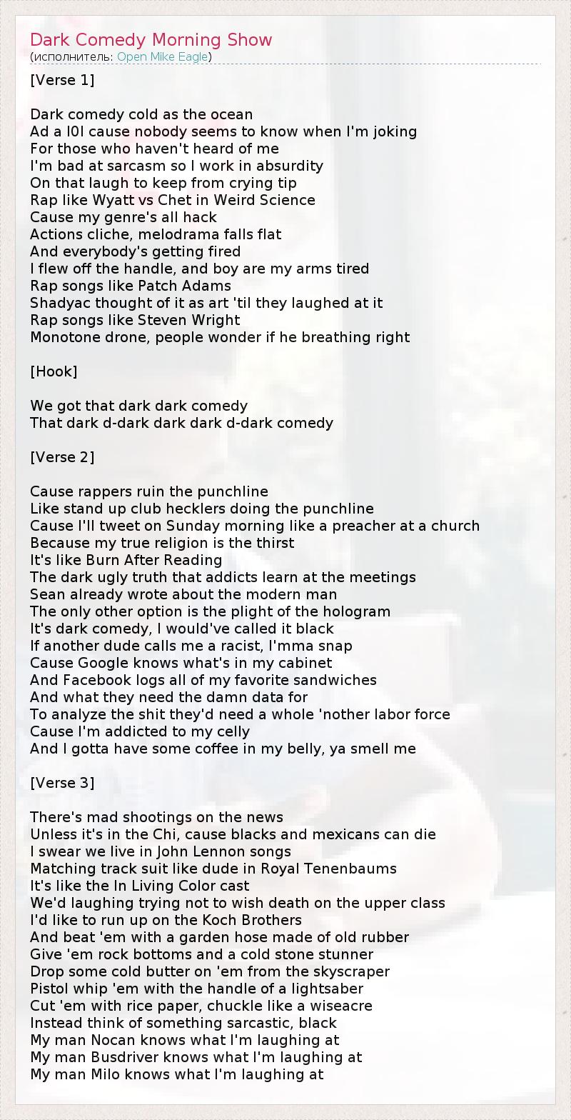 А как ты думаешь, о чем песня "Dark Comedy Morning Show" ?