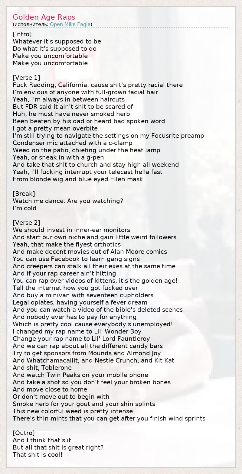 А как ты думаешь, о чем песня "Golden Age Raps" ?
