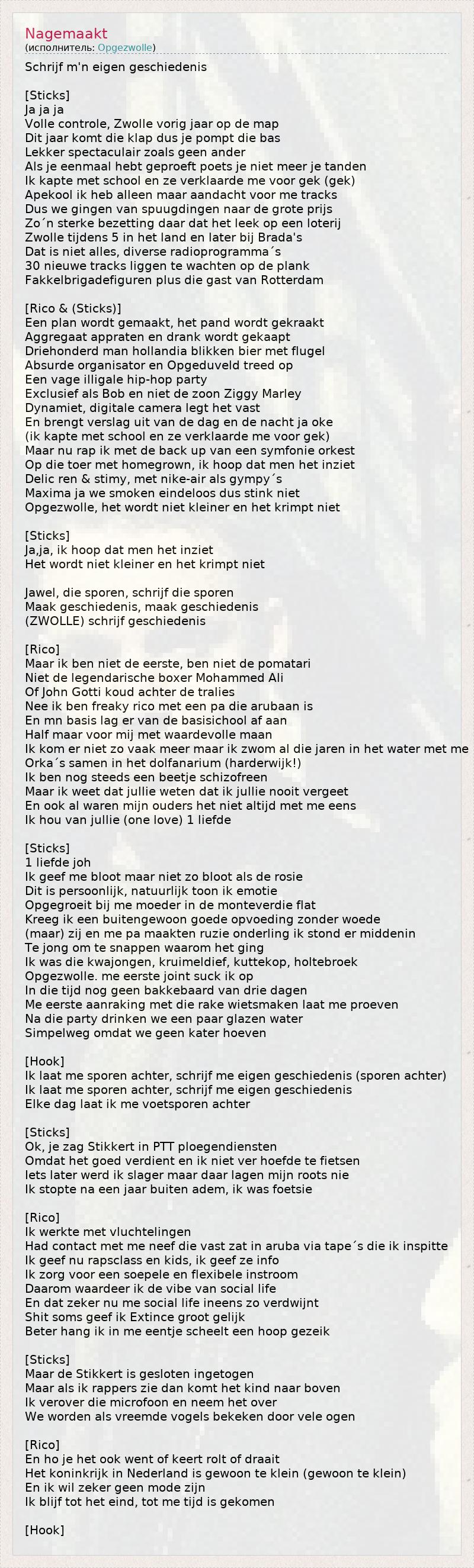 А как ты думаешь, о чем песня "Nagemaakt" ?