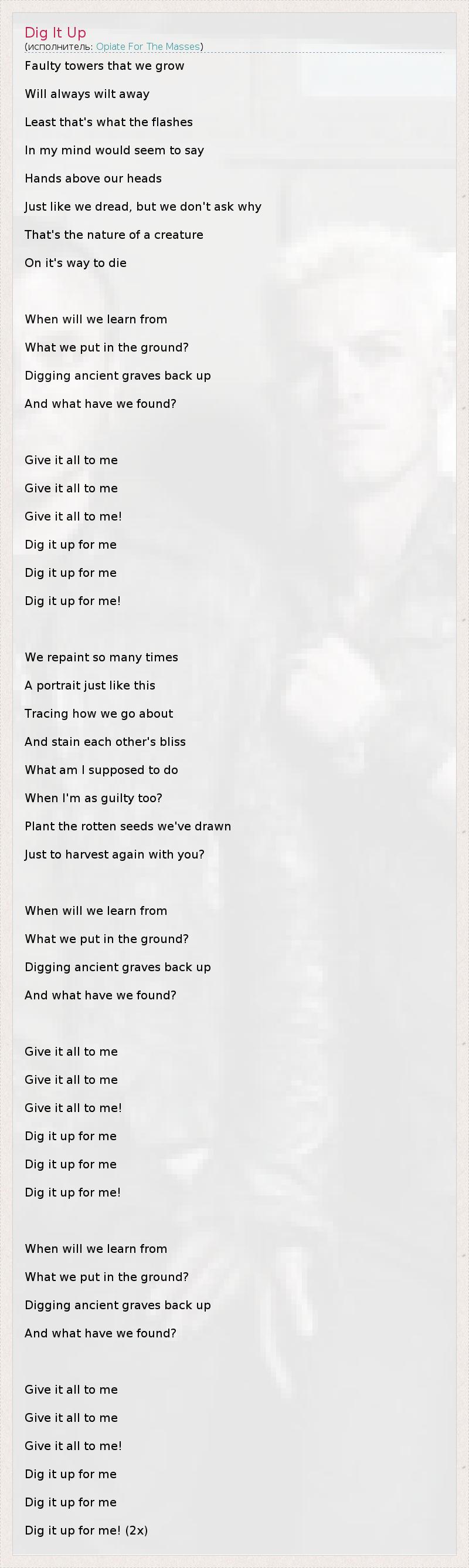 А как ты думаешь, о чем песня "Dig It Up" ?