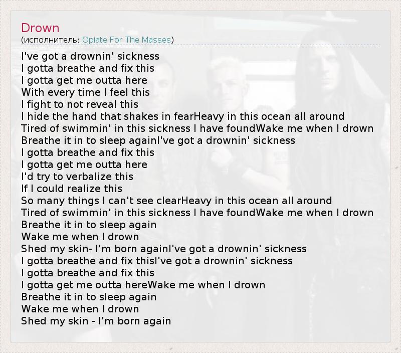 Tired of swimmin' in this sickness I have foundWake me when I drown