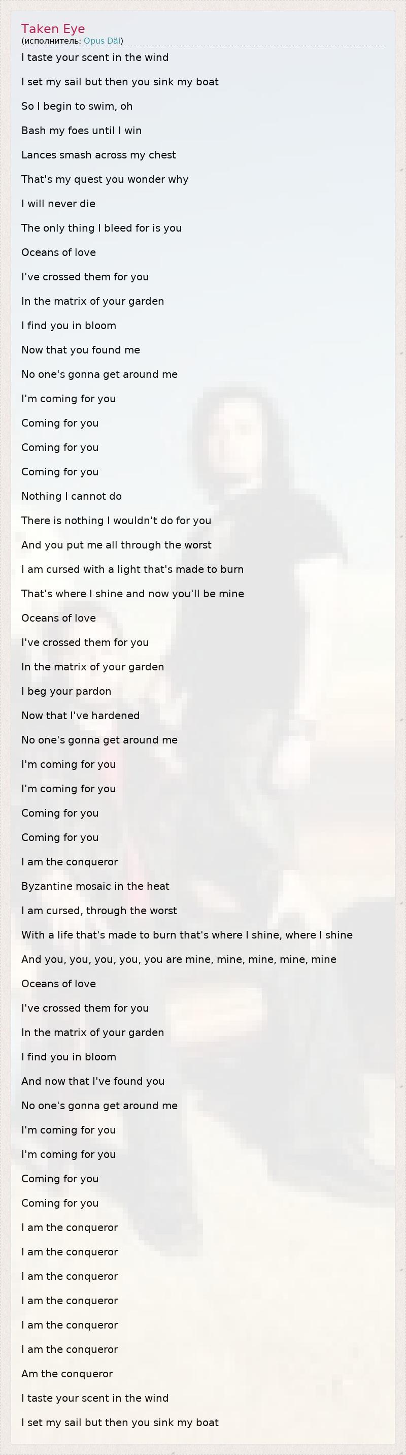 А как ты думаешь, о чем песня "Taken Eye" ?