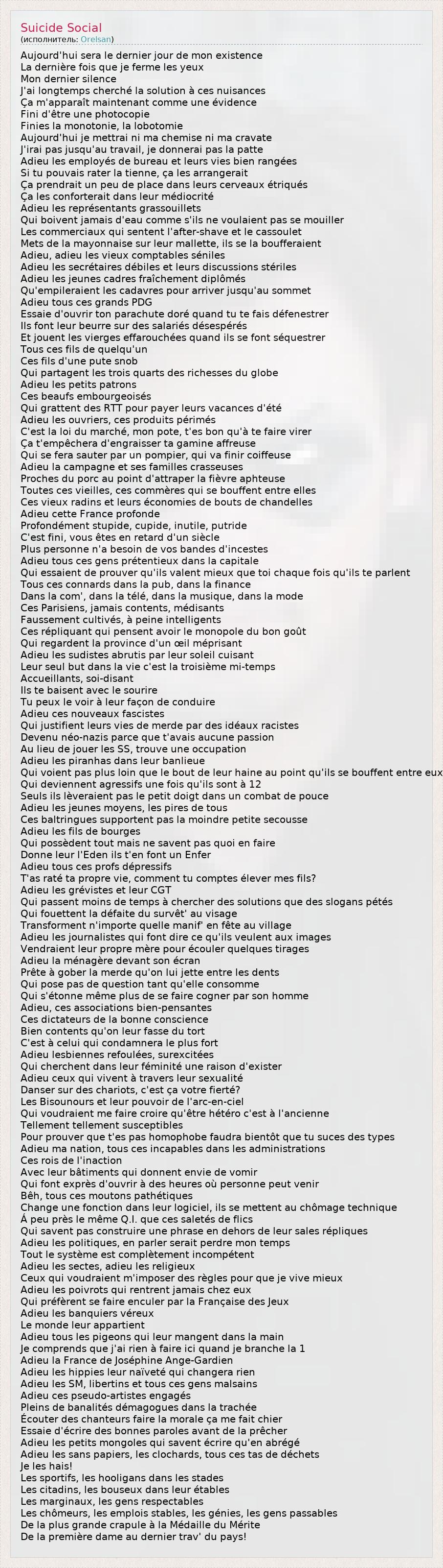 А как ты думаешь, о чем песня "Suicide Social" ?