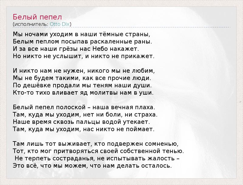 А как ты думаешь, о чем песня "Белый пепел" ?