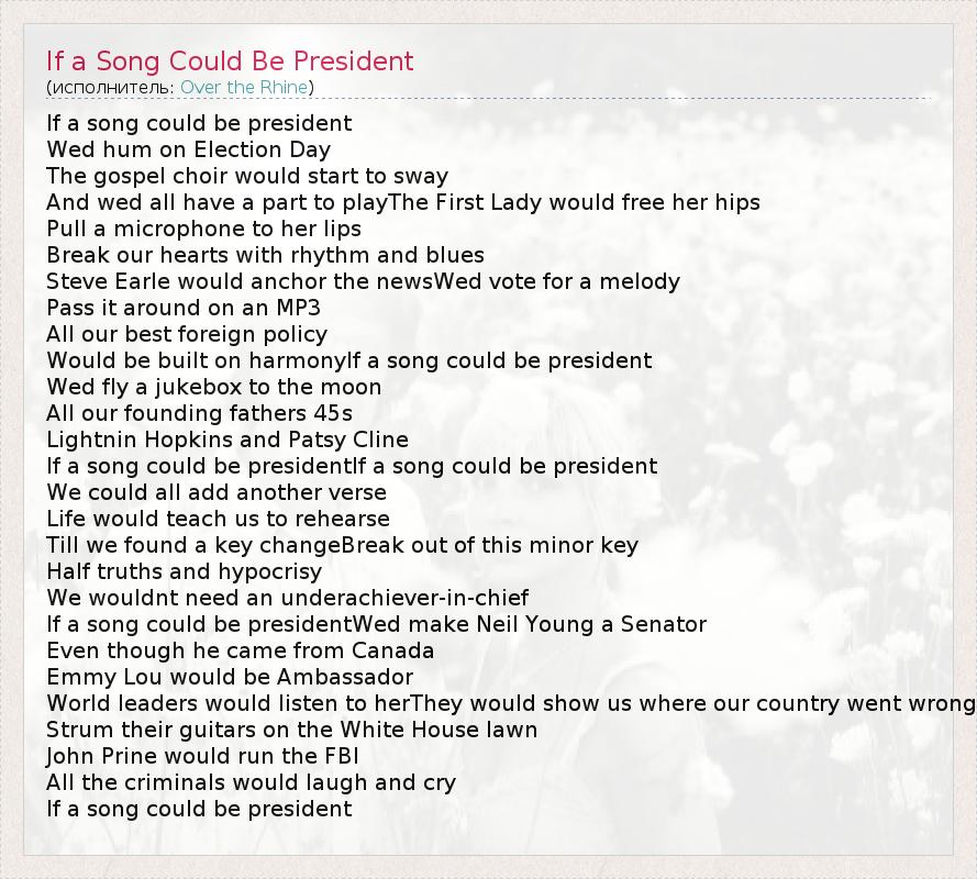 А как ты думаешь, о чем песня "If a Song Could Be President" ?