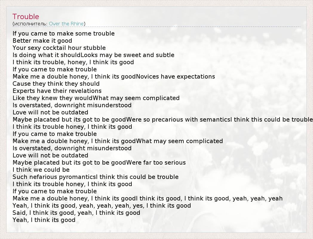 Maybe placated but its got to be goodWere so precarious with semanticsI think this could be trouble