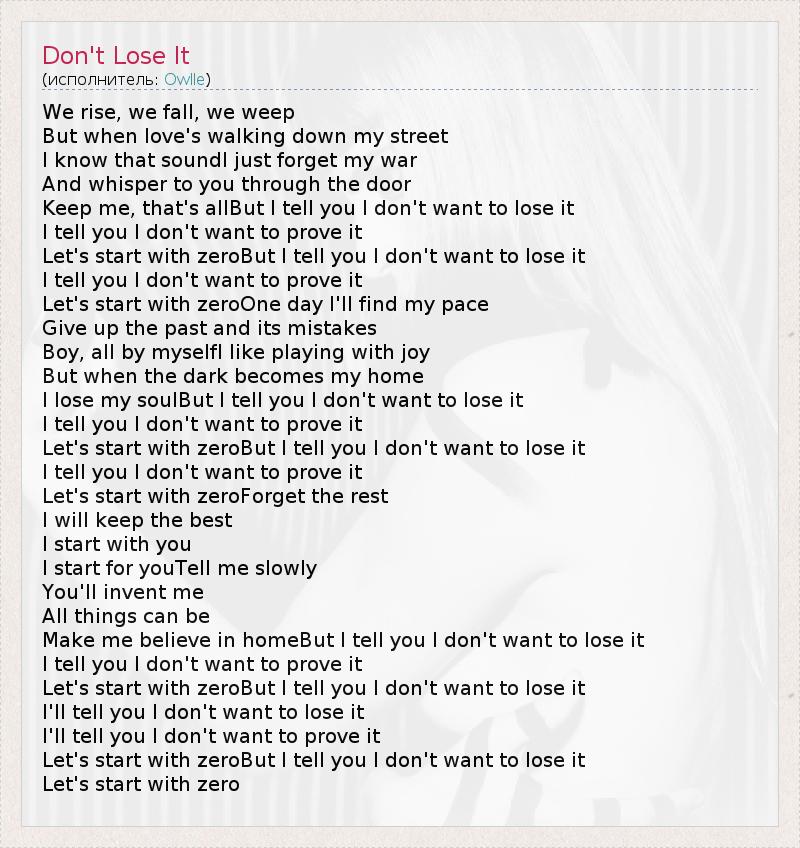 А как ты думаешь, о чем песня "Don't Lose It" ?
