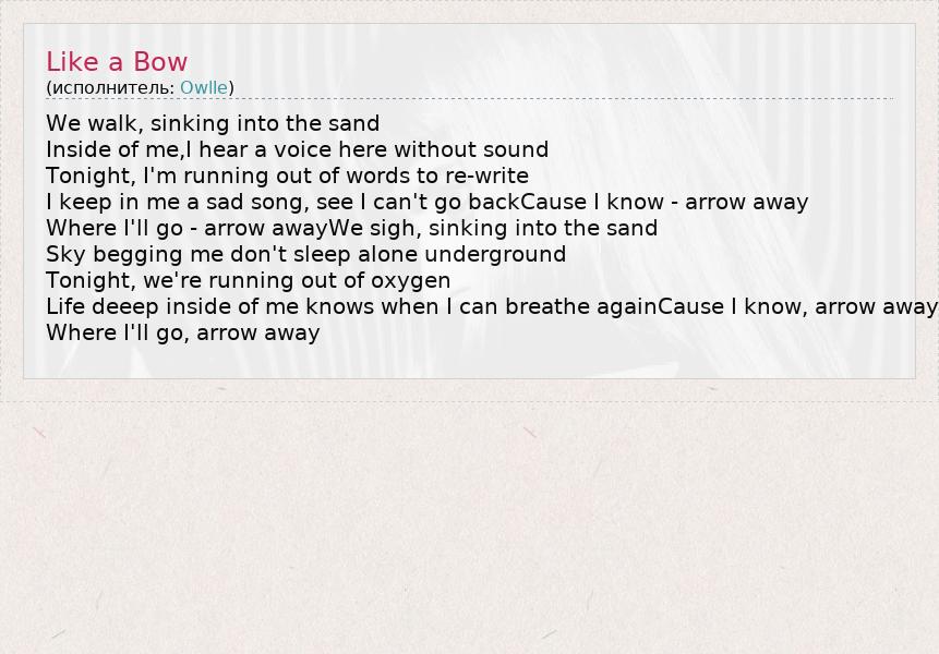 А как ты думаешь, о чем песня "Like a Bow" ?
