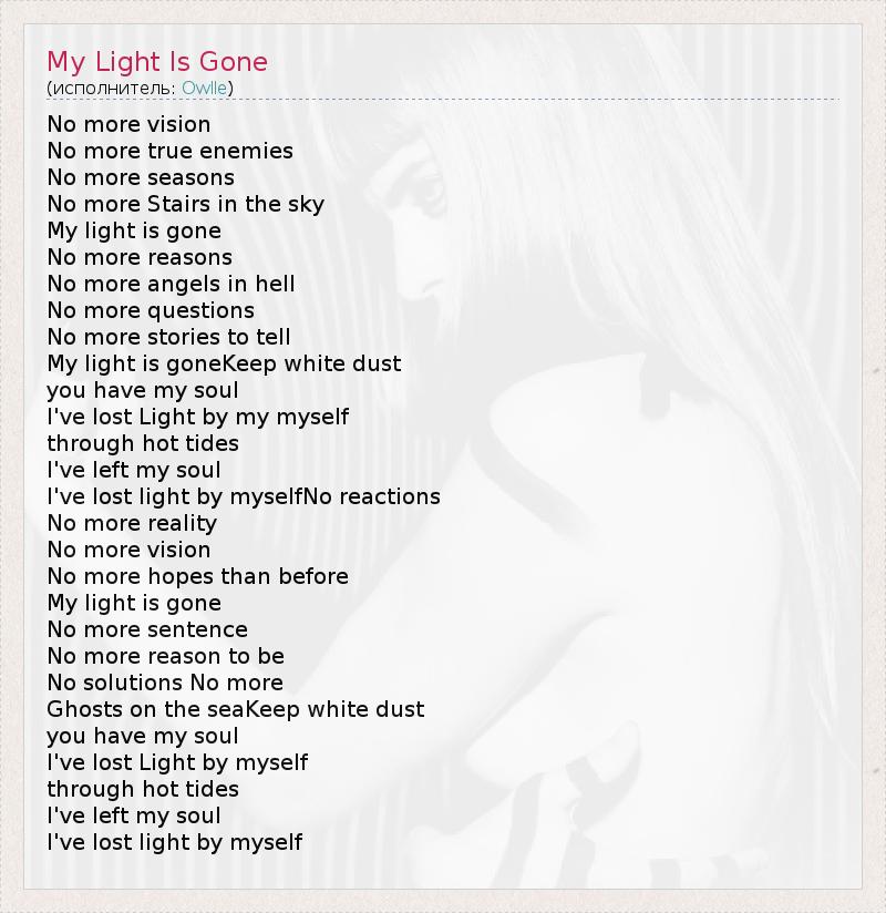 А как ты думаешь, о чем песня "My Light Is Gone" ?