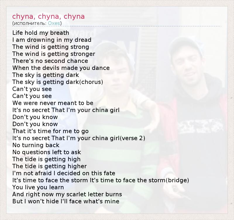 А как ты думаешь, о чем песня "chyna, chyna, chyna" ?