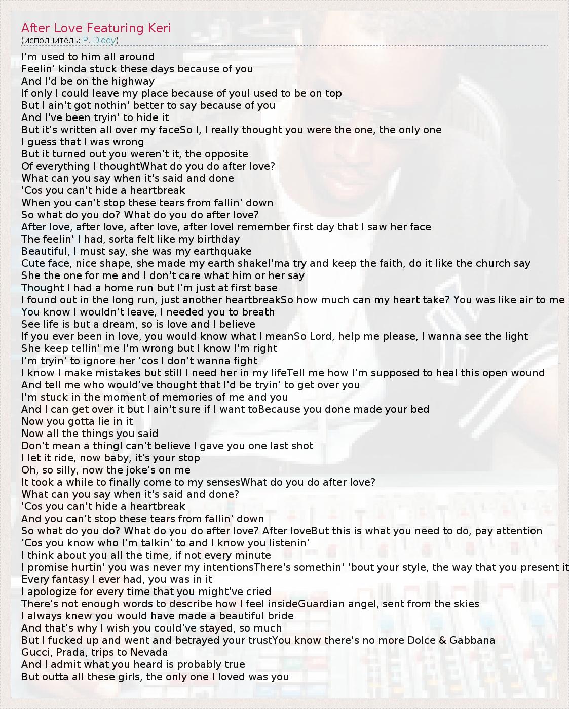 ГлавнаяИсполнителиP. DiddyAfter Love Featuring Keri