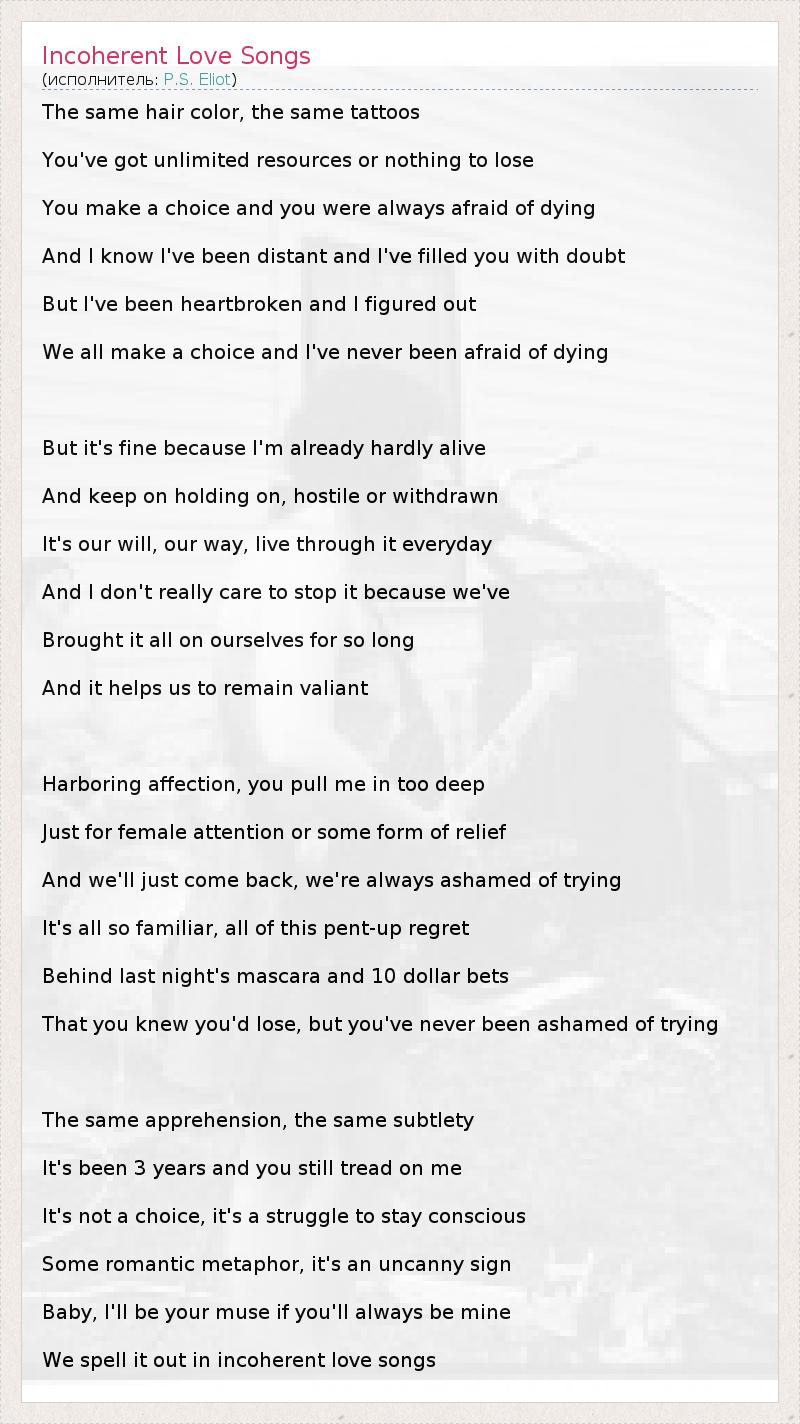 А как ты думаешь, о чем песня "Incoherent Love Songs" ?