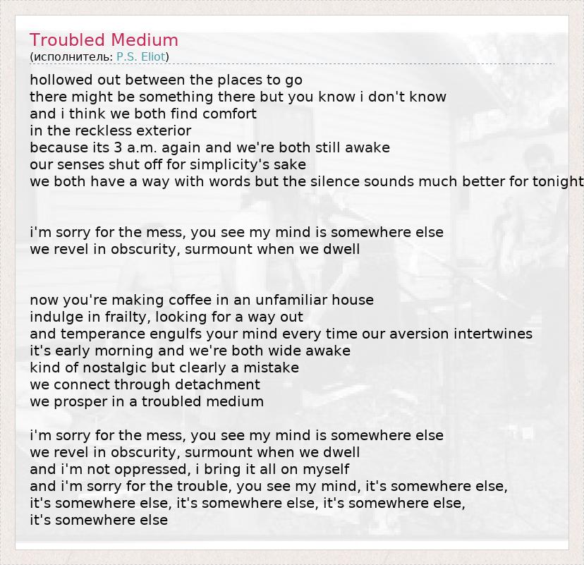 А как ты думаешь, о чем песня "Troubled Medium" ?