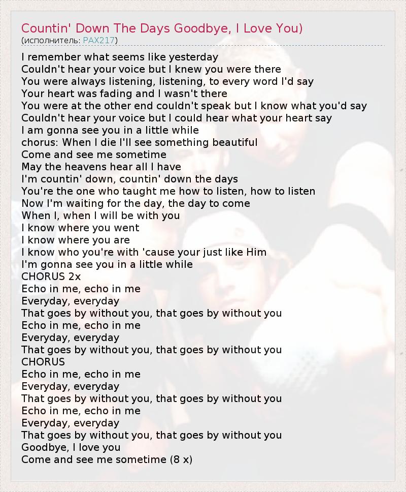 А как ты думаешь, о чем песня "Countin' Down The Days Goodbye, I Love You)" ?