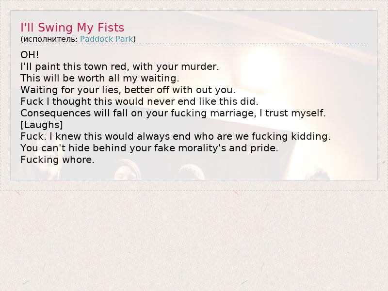 А как ты думаешь, о чем песня "I'll Swing My Fists" ?