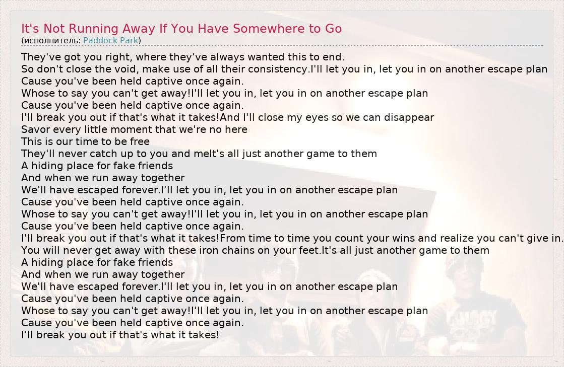 А как ты думаешь, о чем песня "It's Not Running Away If You Have Somewhere to Go" ?