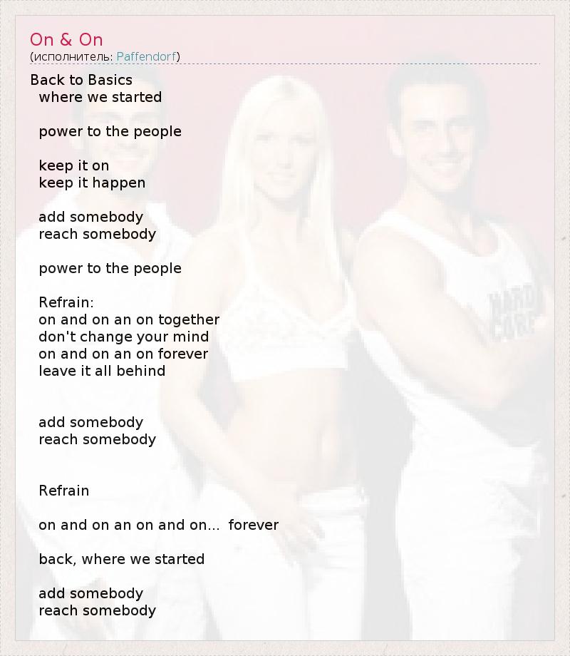 Это интересно:Paffendorf - это продюсеры Ramon Zenker, Gottfried Engels и DJ Kadozer. К ним надо добавить певицу Tanja Seifert и двух танцоров (они ещё и практикующие дантисты) Alexander и Patrick.История Paffendorf началась в 1998 с трёх хитов Smile, Ruf Mich An/Call Me Now и Terminator. Затем последовали Where Are You и Everebody Scream. А потом альбом Dance City. Затем вышли треки Rhythm And Sex и Be Cool.