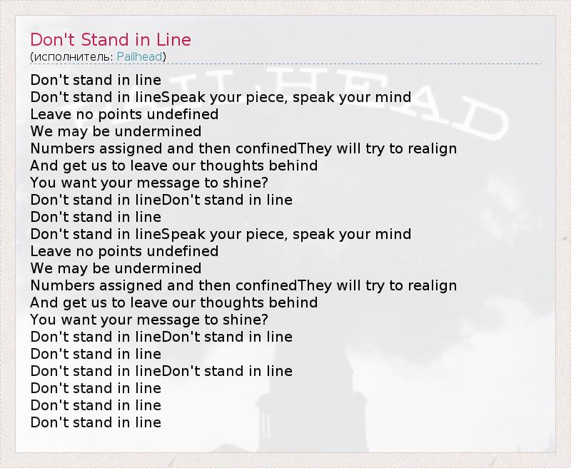 А как ты думаешь, о чем песня "Don't Stand in Line" ?