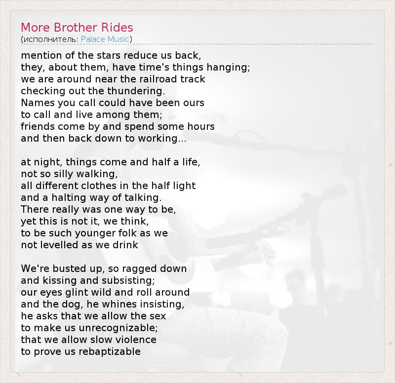 А как ты думаешь, о чем песня "More Brother Rides" ?