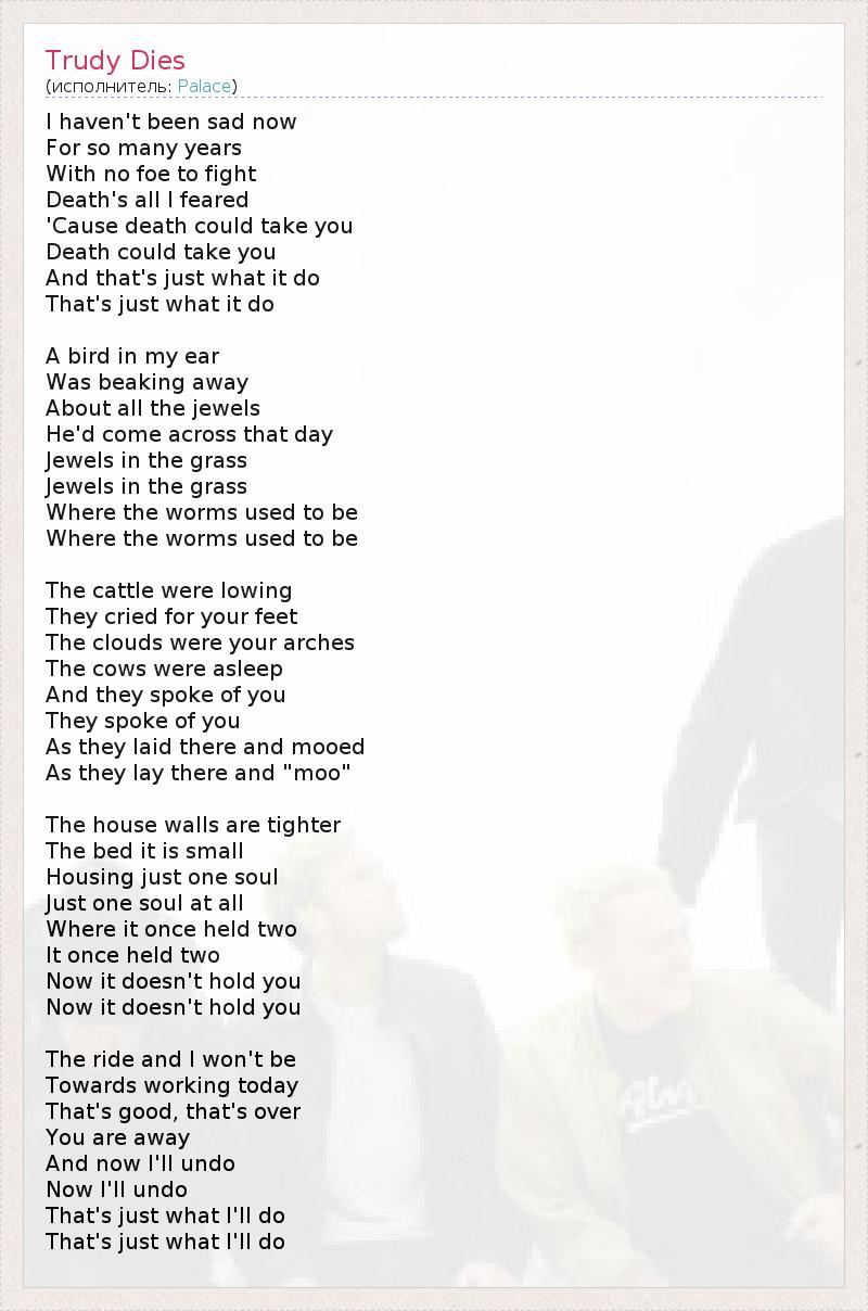 А как ты думаешь, о чем песня "Trudy Dies" ?
