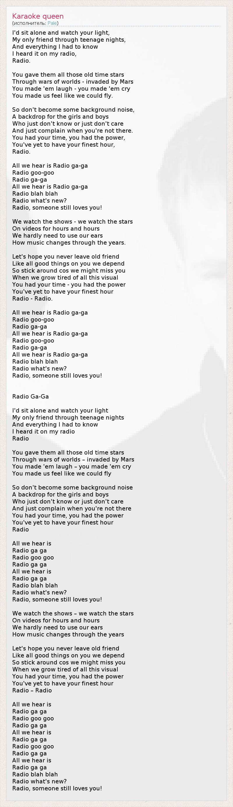 Радио Га-Га* (перевод Сашуля Егошина из Москвы)
