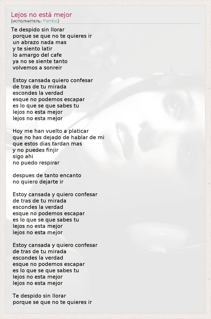 ГлавнаяИсполнителиPamboLejos no está mejor