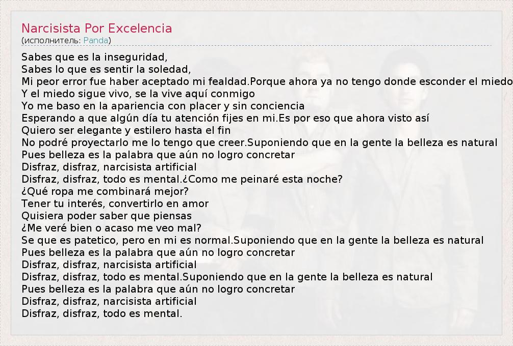 А как ты думаешь, о чем песня "Narcisista Por Excelencia" ?