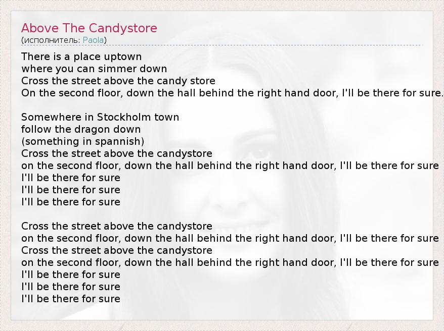 ГлавнаяИсполнителиPaolaAbove The Candystore