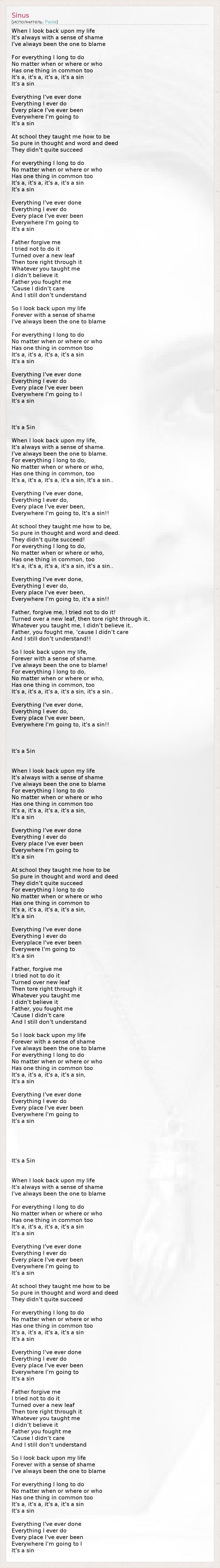It's a, it's a, it's a, it's a sin, It's a sin..