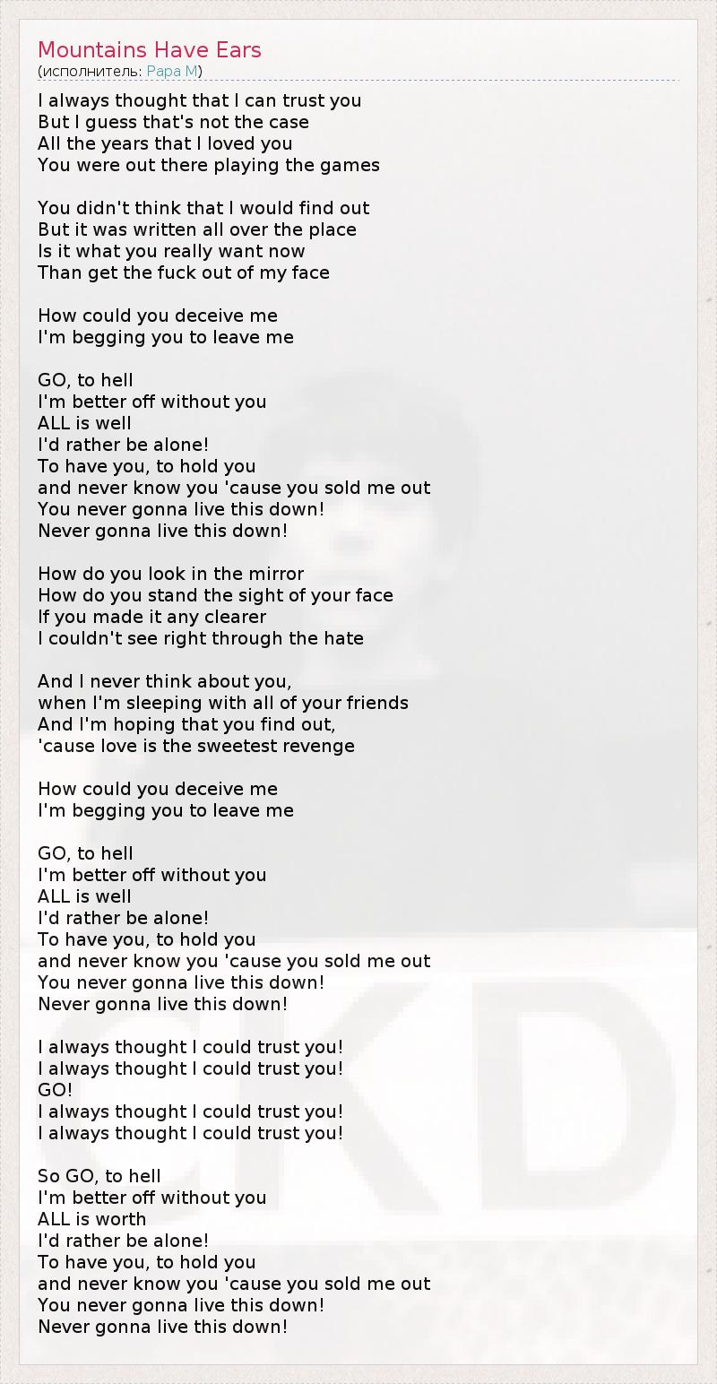 А как ты думаешь, о чем песня "Mountains Have Ears" ?