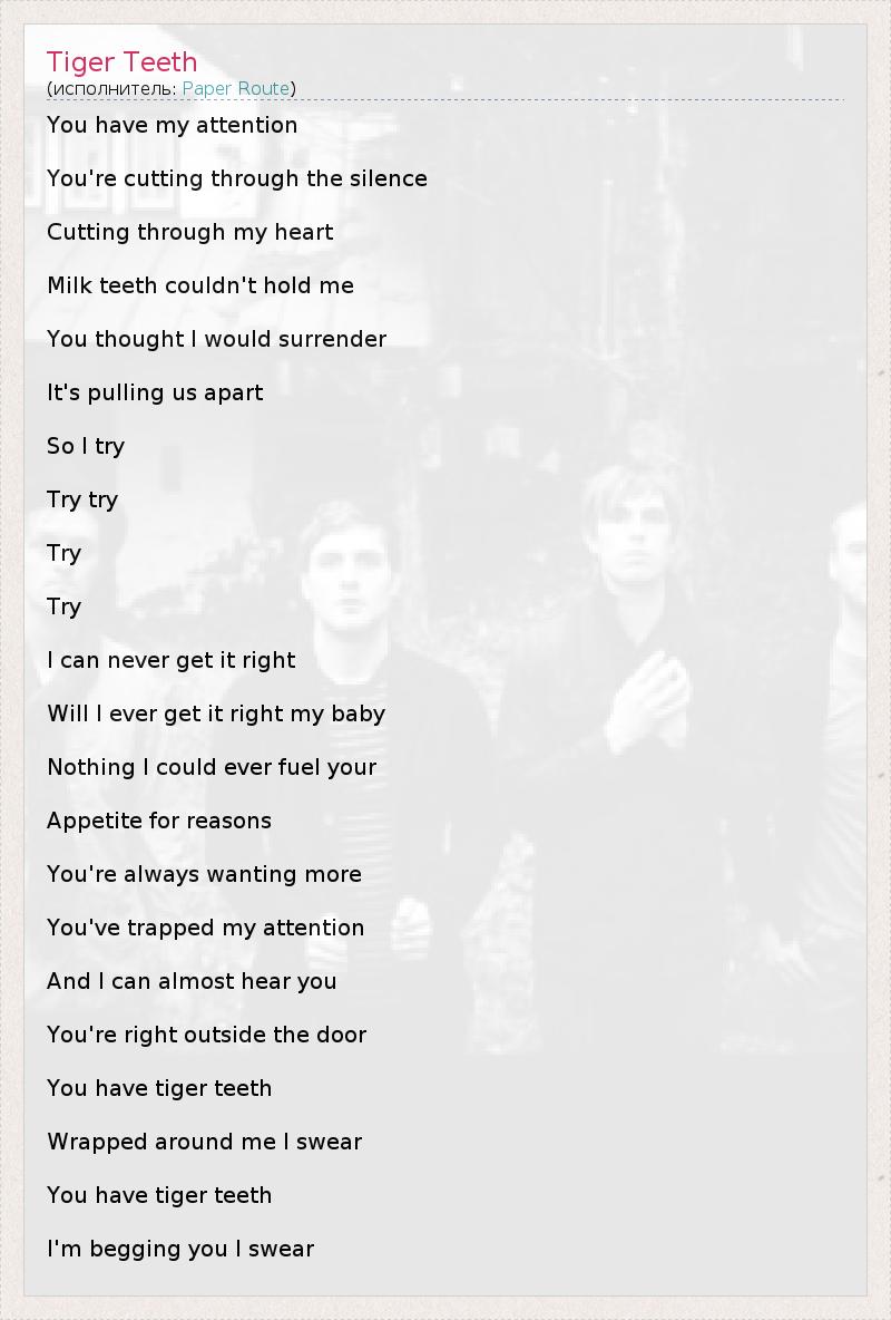 А как ты думаешь, о чем песня "Tiger Teeth" ?