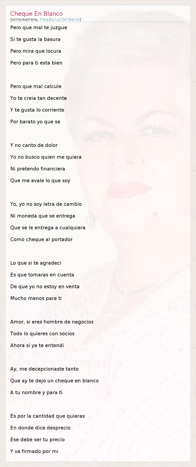 А как ты думаешь, о чем песня "Cheque En Blanco" ?