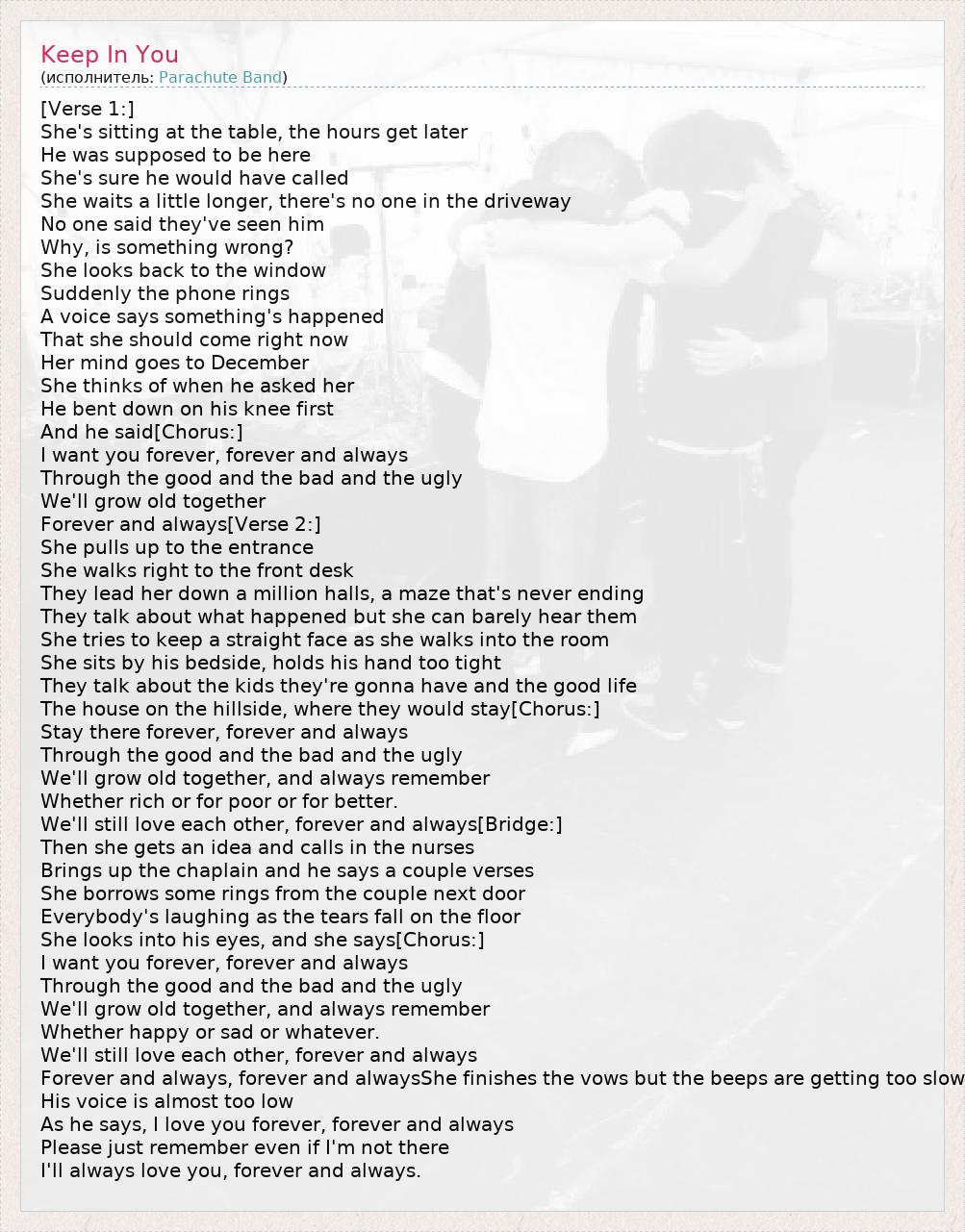 Forever and always, forever and alwaysShe finishes the vows but the beeps are getting too slow