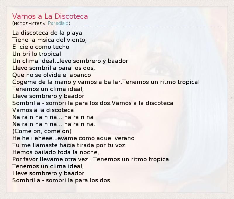 А как ты думаешь, о чем песня "Vamos a La Discoteca" ?