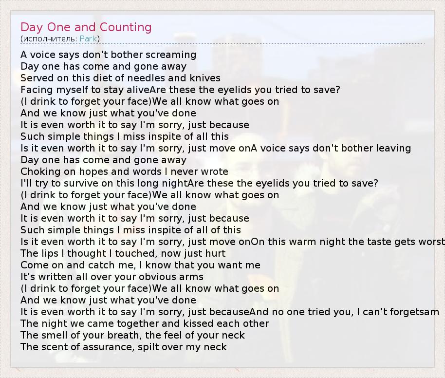 А как ты думаешь, о чем песня "Day One and Counting" ?