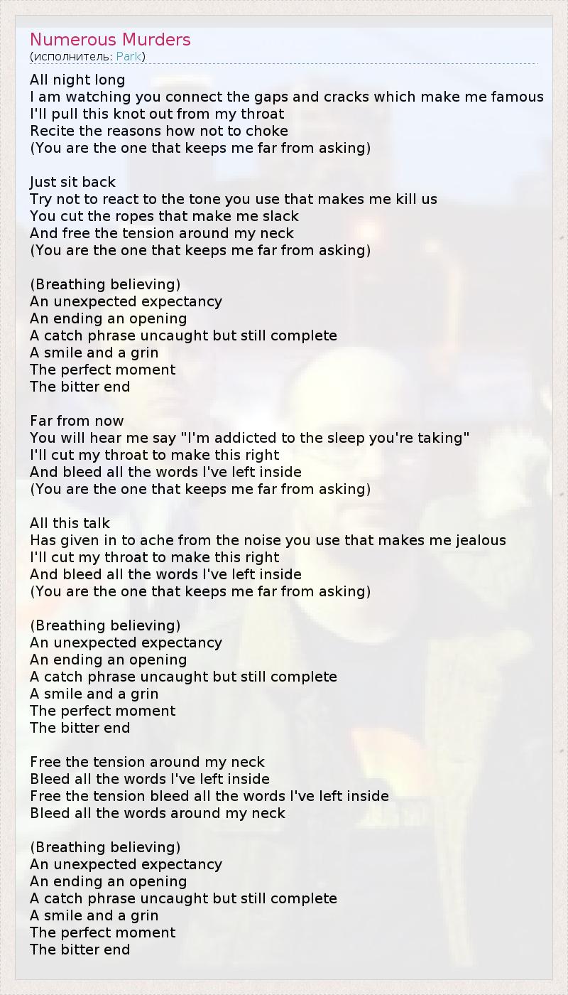 А как ты думаешь, о чем песня "Numerous Murders" ?