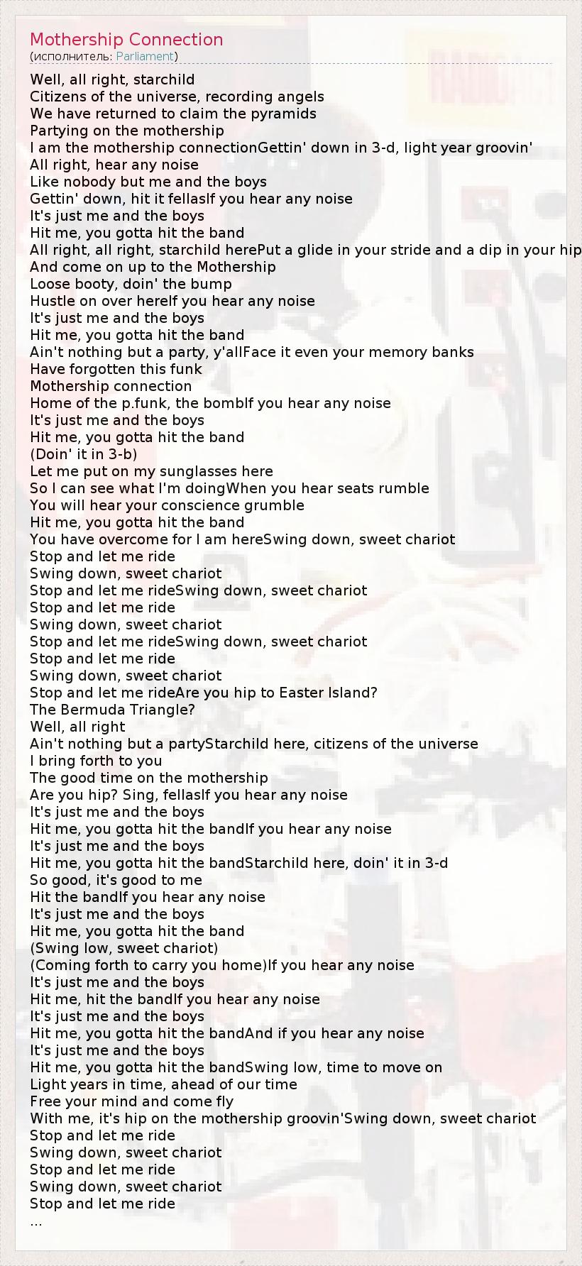 А как ты думаешь, о чем песня "Mothership Connection" ?