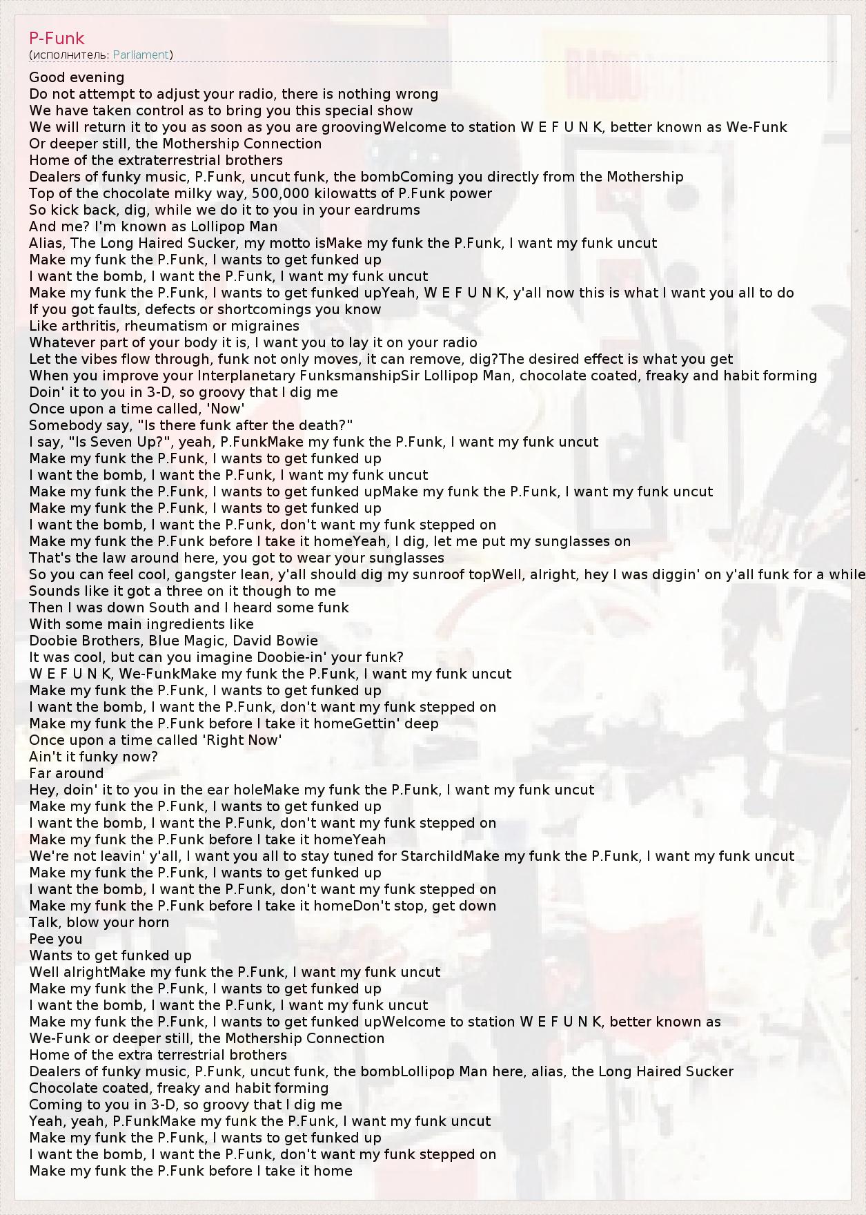А как ты думаешь, о чем песня "P-Funk" ?
