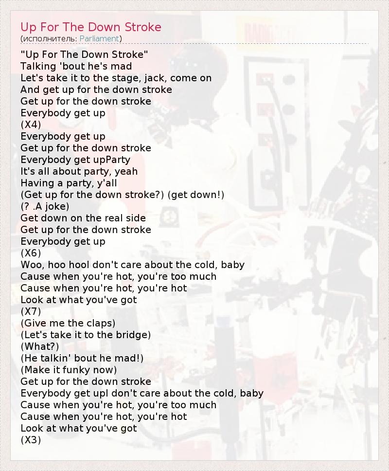 А как ты думаешь, о чем песня "Up For The Down Stroke" ?